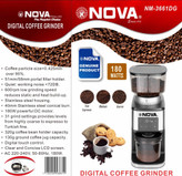 دستگاه آسیاب قهوه نوا 3661 دارای مخزنی به ظرفیت 130 گرم است و تیغه ای از جنس استیل دارد که باعث می شود، دانه های قهوه به طور یکنواخت به پودر تبدیل شوند.