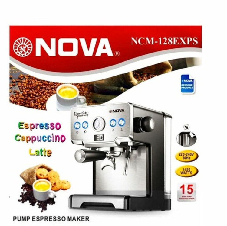 اسپرسوساز نیمه صنعتی نوا مدل Nova NCM-128EXPS با قدرت بخار ۱۵ بار و قدرت توان مصرفی ۱۴۵۰ وات با نشانگر درجه فشار بخار عقربه ای یک قهوه ساز و اسپرسو ساز نیمه صنعتی و بسیار قوی محسوب می شود.