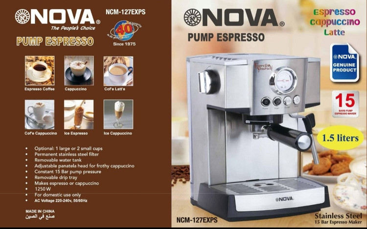 نوا 127 دستگاهی نیمه صنعتی با فشار بخار 15 بار و قدرت توان مصرفی 1250 وات مجهز به نازل تولید بخار است که از آن برای تهیه کاپوچینو و کف شیر و انواع نوشیدنیهای گرم استفاده می شود.