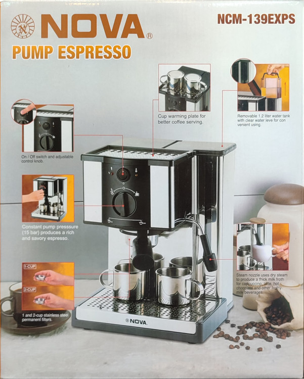 اسپرسوساز نوا 139 NOVA با طراحی عالی یک دستگاه پر قدرت و کاملاً کاربردی برای مصارف خانگی و یا کافه های کوچک است.اسپرسو ساز نوا با قدرت بخار 15 بار یک قهوه ساز و اسپرسو ساز قوی محسوب می شود.اسپرسو خارج شده از این دستگاه با گرمای عالی نشان دهنده ی قدرت بسیار خوب نوا 139 است.نوا 139 مجهز به نازل تولید بخار است که از برای تهیه کاپوچینو و کف شیر استفاده میشود و همچنین مجهز به صفحه ی گرم نگهداره ی فنجان است که به شما کمک میکند فنجان قهوه خود را پیش گرم کنید و از نوشیدن یک فنجان اسپرسو خوب لذت ببرید.نوا 139 دارای دو فیلتر قهوه تک و دوبل است که شما میتوانید از آنها استفاده کنید.